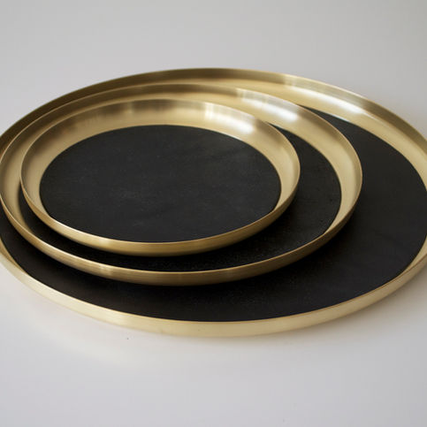SERVING TRAYS IN BRASS, BRUSHED BY HAND